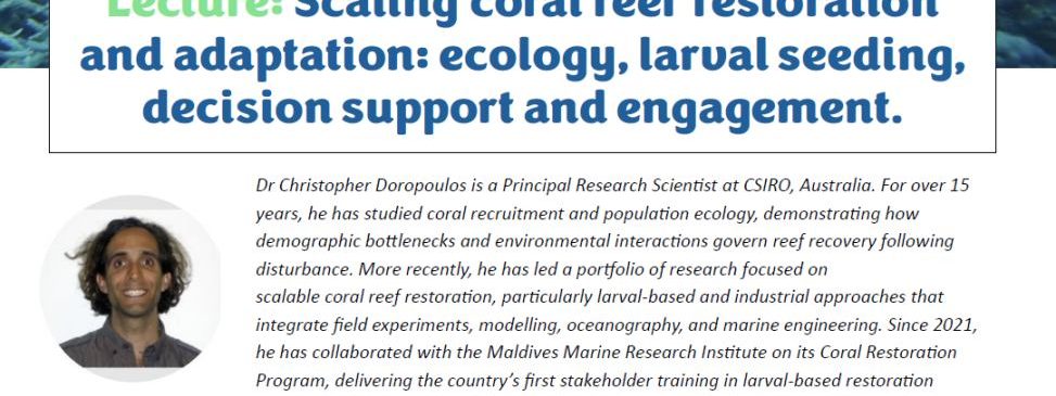 Scaling coral reef restoration and adaptation: ecology, larval seeding, decision support and engagement
