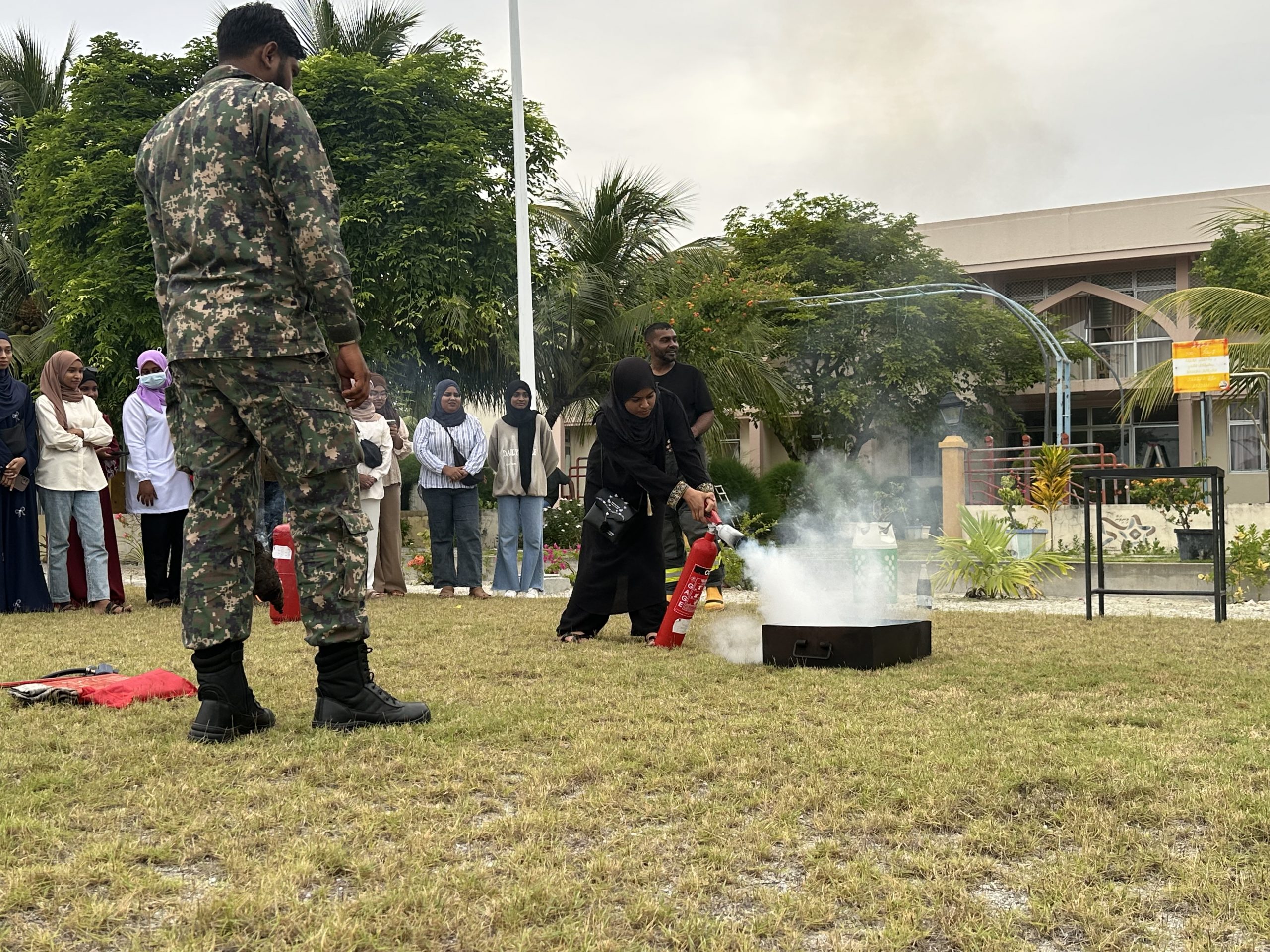 The session was facilitated by the dedicated firefighters from MNDF Southern Area – Thinadhoo Fire Station, who guided students through essential information on fire prevention, emergency response procedures, and practical safety measures to follow during potential incidents.