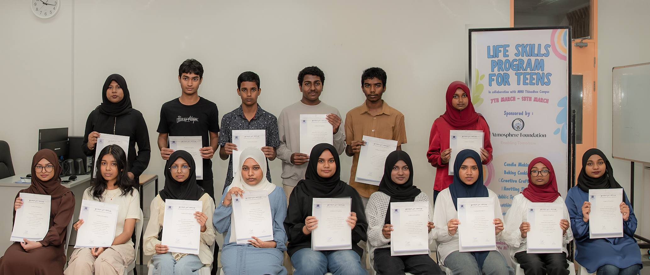 Thinadhoo, 7–13 March 2026 — A week-long Life Skills Programme for teens of Thinadhoo City was conducted at MNU Thinadhoo Campus from 7th to 13th March 2026, led by local educator Shifa Mohamed in collaboration with MNU Thinadhoo Campus and sponsored by the Atmosphere Foundation.