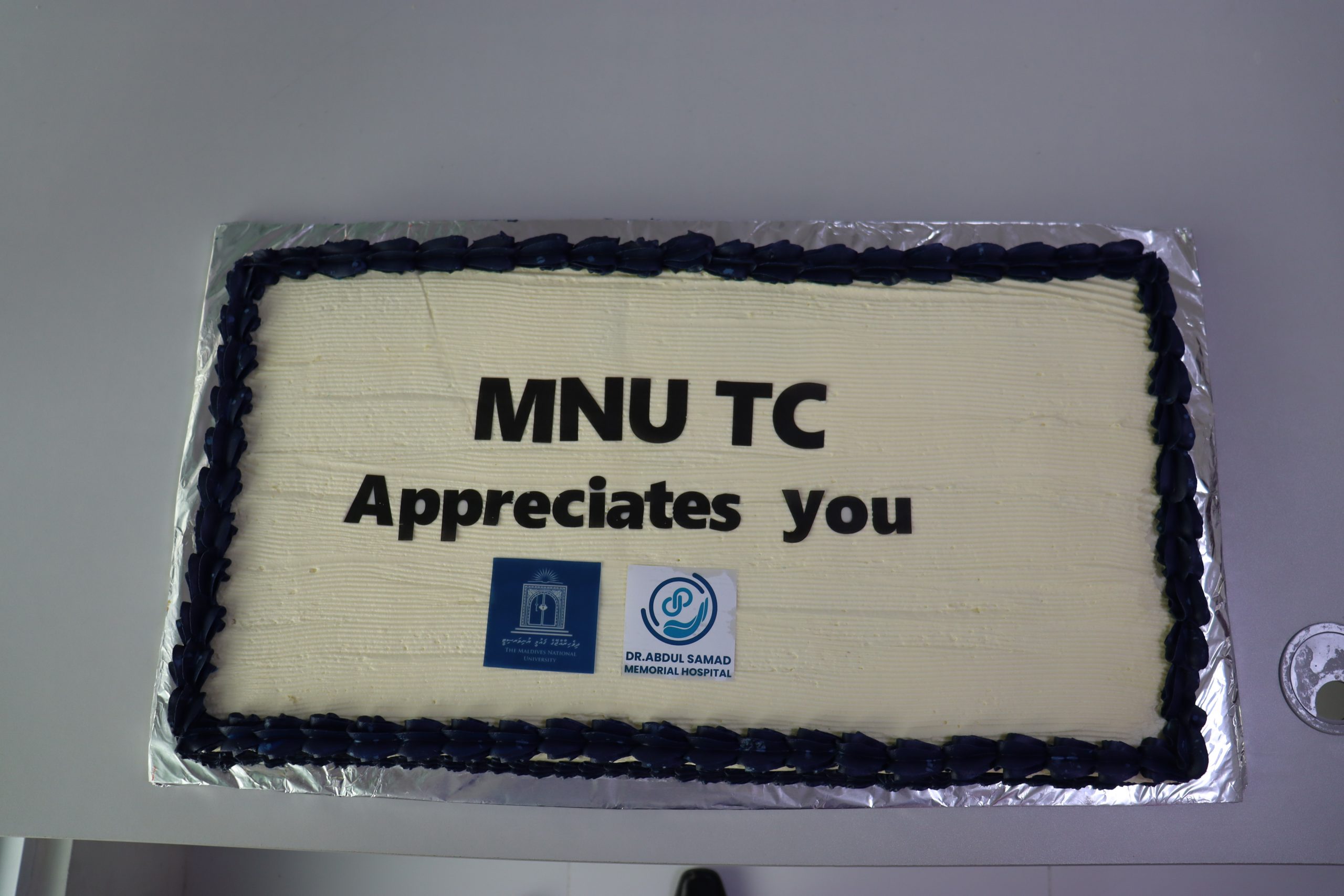 As part of the celebration, the MNU Thinadhoo Campus team visited Dr. Abdul Samad Memorial Hospital (ASMH) and shared appreciation with the nursing staff by presenting a cake as a small token of gratitude.