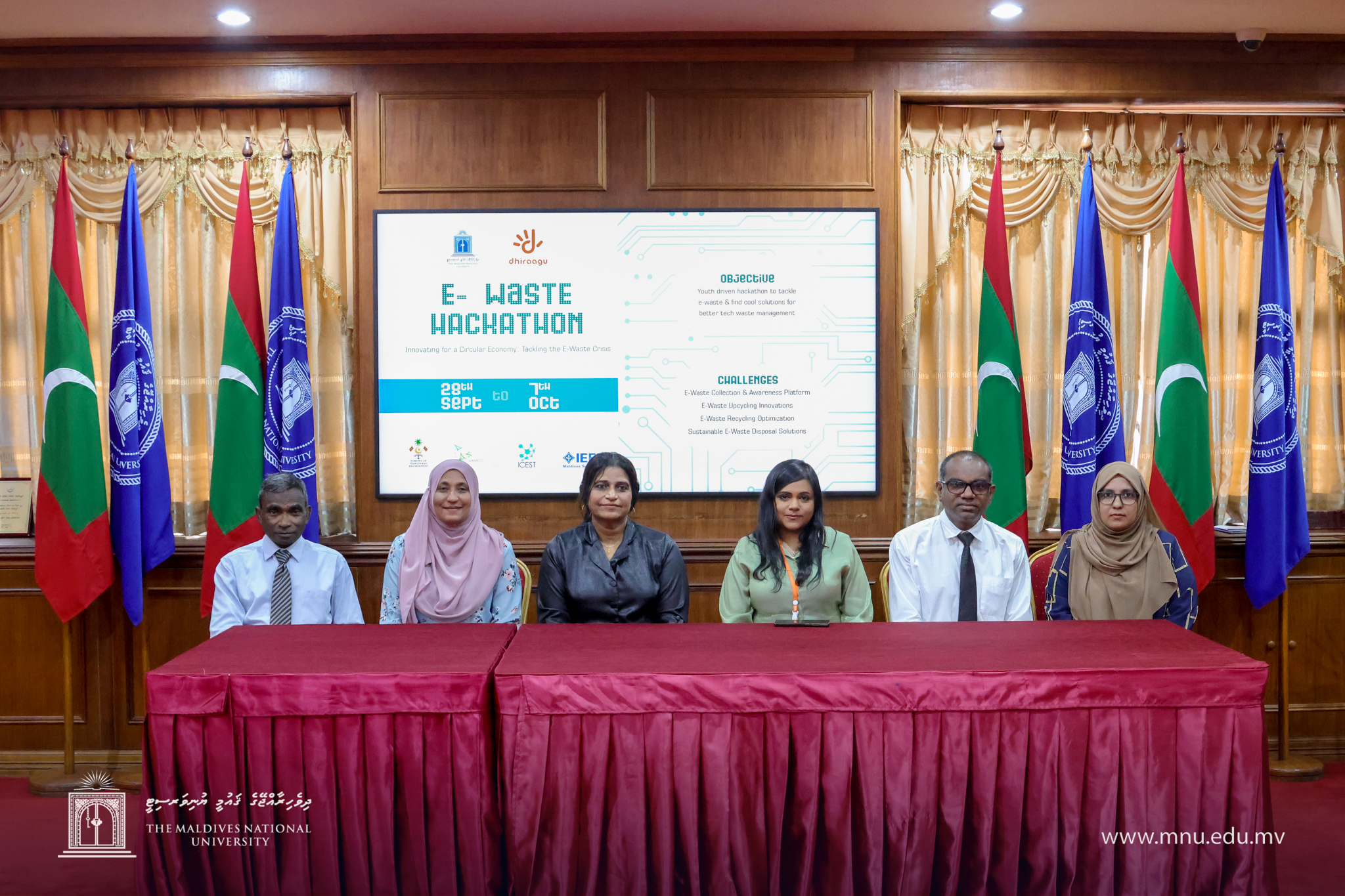 Malé, Maldives – September 14, 2025 – The Maldives National University (MNU), in partnership with Dhiraagu, the Ministry of Tourism and Environment, WAMCO, IEEE Maldives Subsection, and ICEST2025, is proud to announce the E-Waste Hackathon 2025 – a youth-driven initiative aimed at addressing the pressing issue of electronic waste in the Maldives.