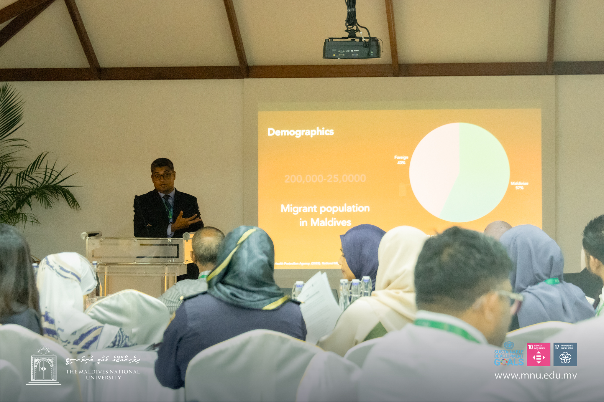 The theme of this year’s two-day conference is “Equitable Access, Reduced Vulnerabilities: Advancing Migrant Health in the Maldives“, uniting stakeholders to advance policy implementation, improve service delivery, and address the vulnerabilities faced by migrant communities. Through technical sessions and collaborative discussions, the conference aims to drive practical, evidence-informed action toward more equitable health outcomes.