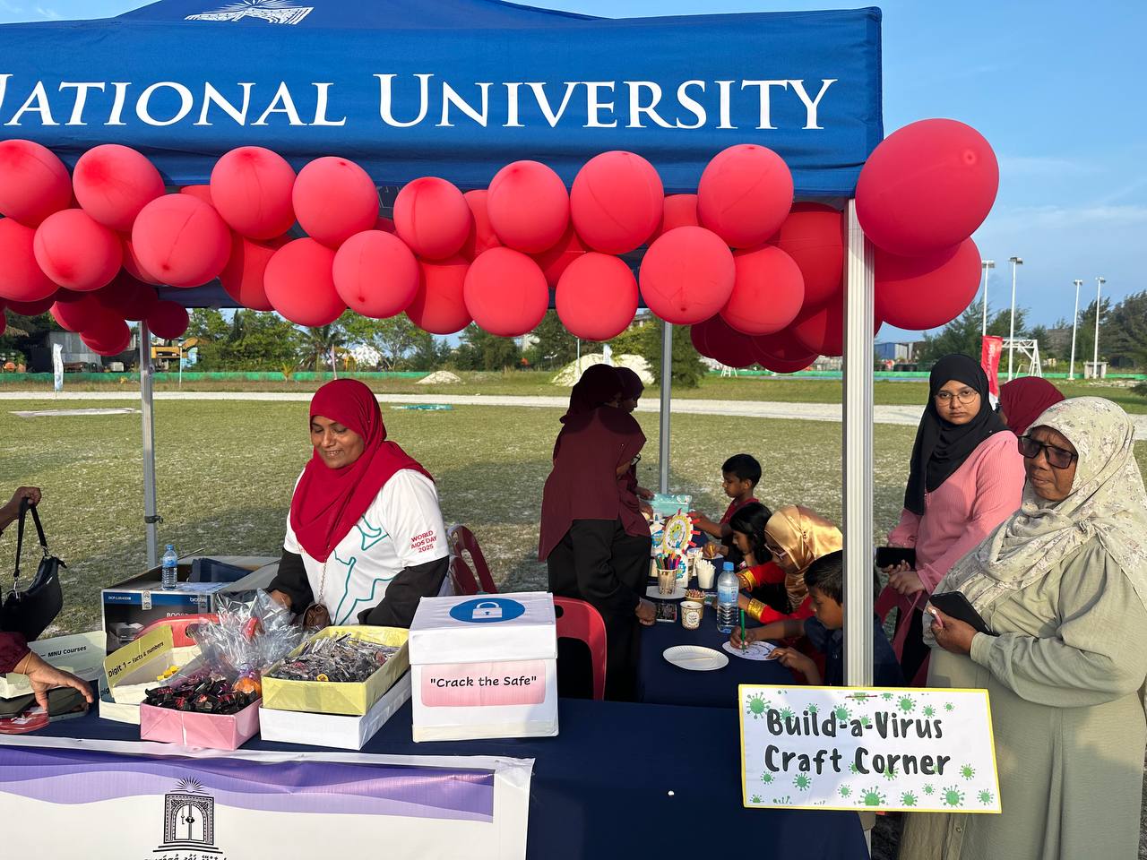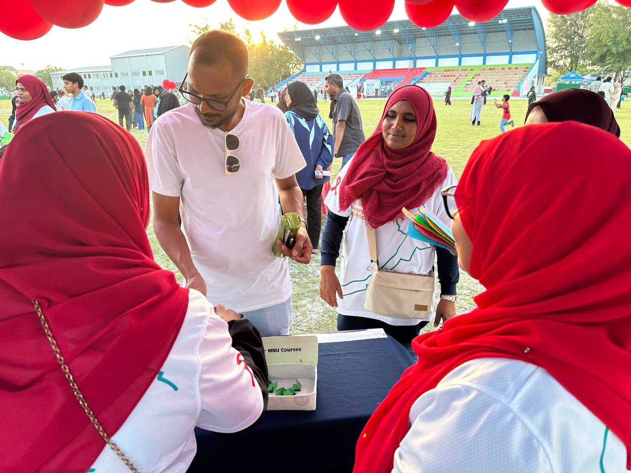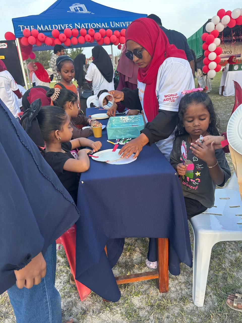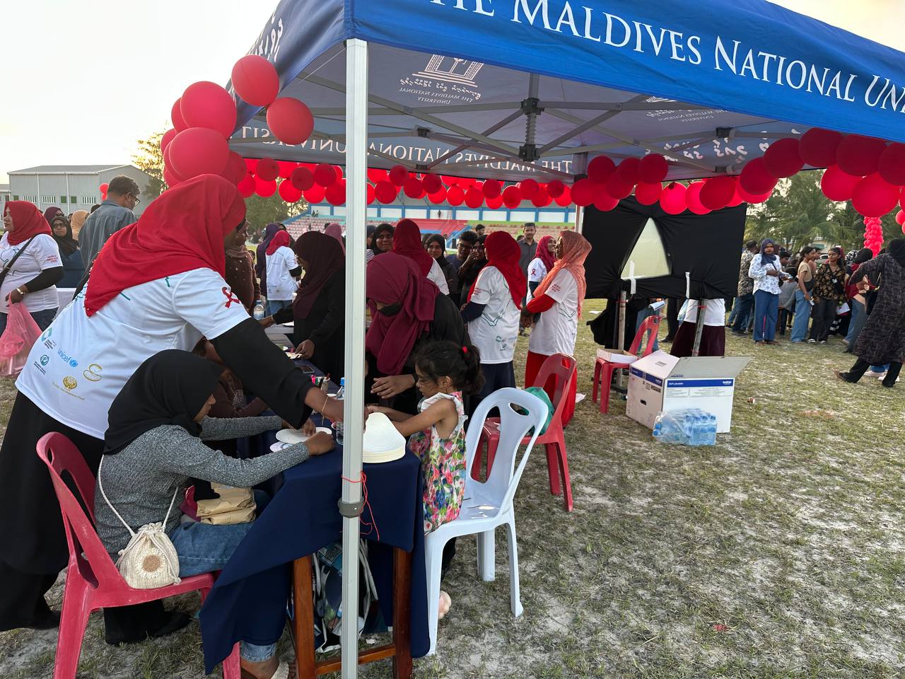 MNU Thinadhoo Campus participated in a Family Event held on 22 December 2025 in commemoration of World AIDS Day, aimed at promoting awareness, unity, and collective responsibility in the fight against HIV/AIDS. The initiative was organised by Dr. Abdul Samad Memorial Hospital in collaboration with the Health Protection Agency (HPA), UNICEF, Society for Health Education (SHE), and the SAAC Development Fund, together with Thinadhoo City government entities, local NGOs, and GDh. Gadhoo Health Centre. This collective effort reflected a shared vision of building informed, compassionate, and resilient communities.